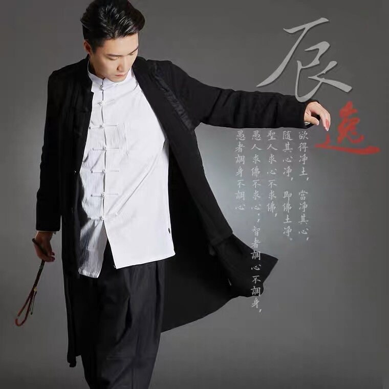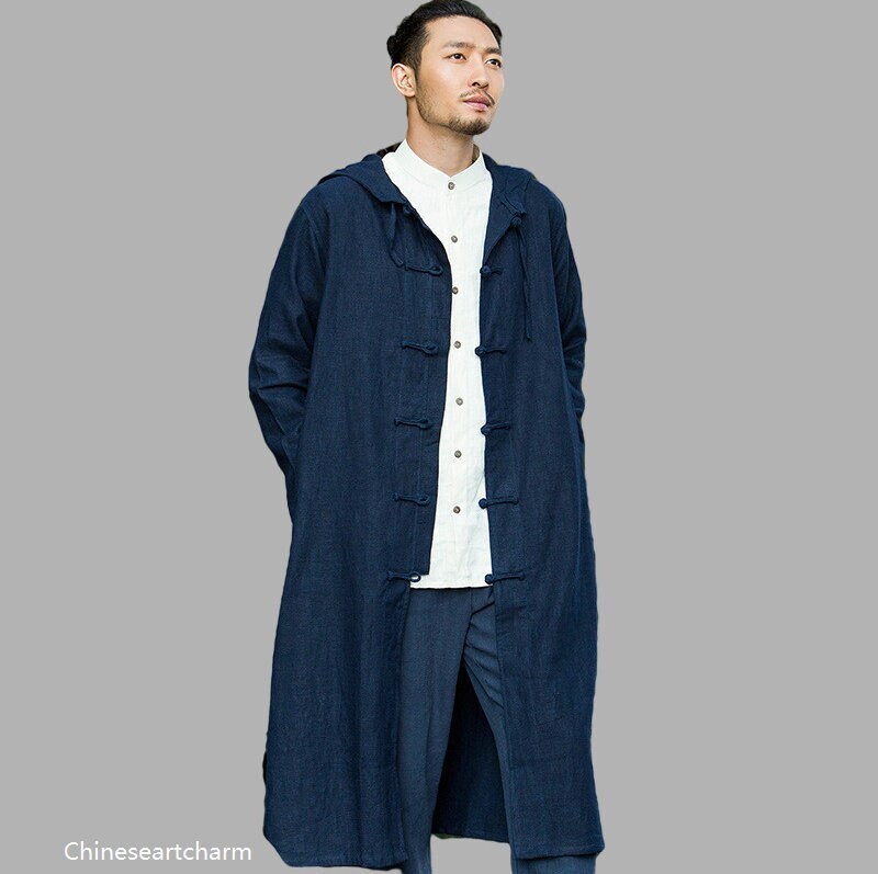Lzjn Chinese Men Classic Master Clothing Long Linen Trench Robe Coat Side Slit Kung Fu Tai Chi Traditional Embroidery Outfit Trench Aliexpress
